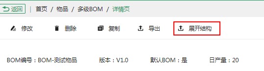 多級BOM詳情頁支持導出多級BOM,可實現(xiàn)分階導出多級BOM。